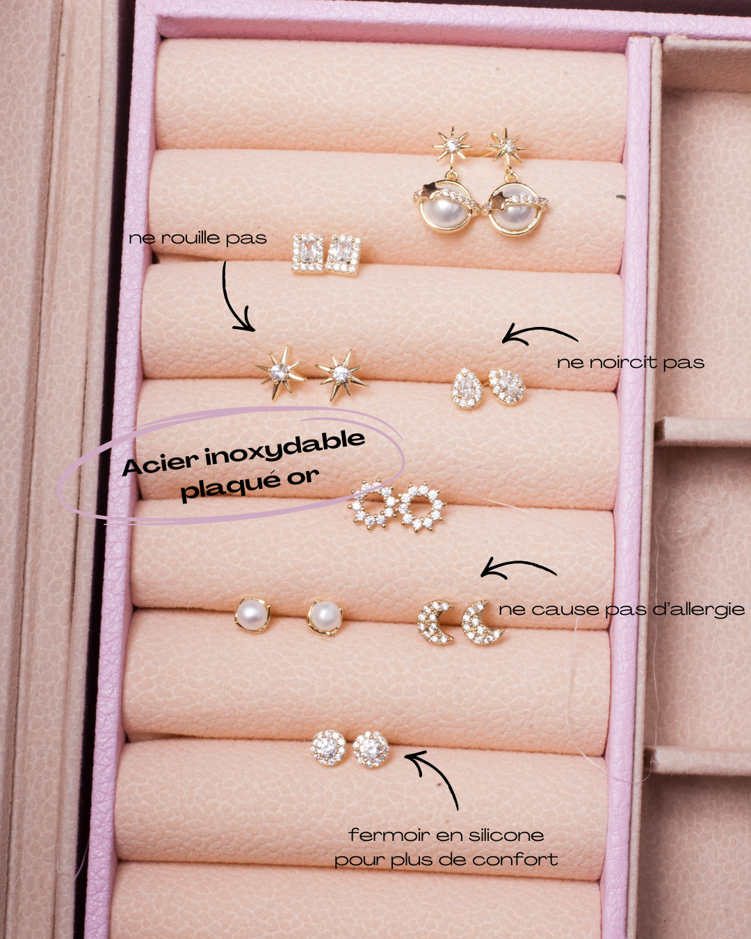 Métal noble & durable →Résistant à la corrosion, ne noircit pas, ne déteint pas.