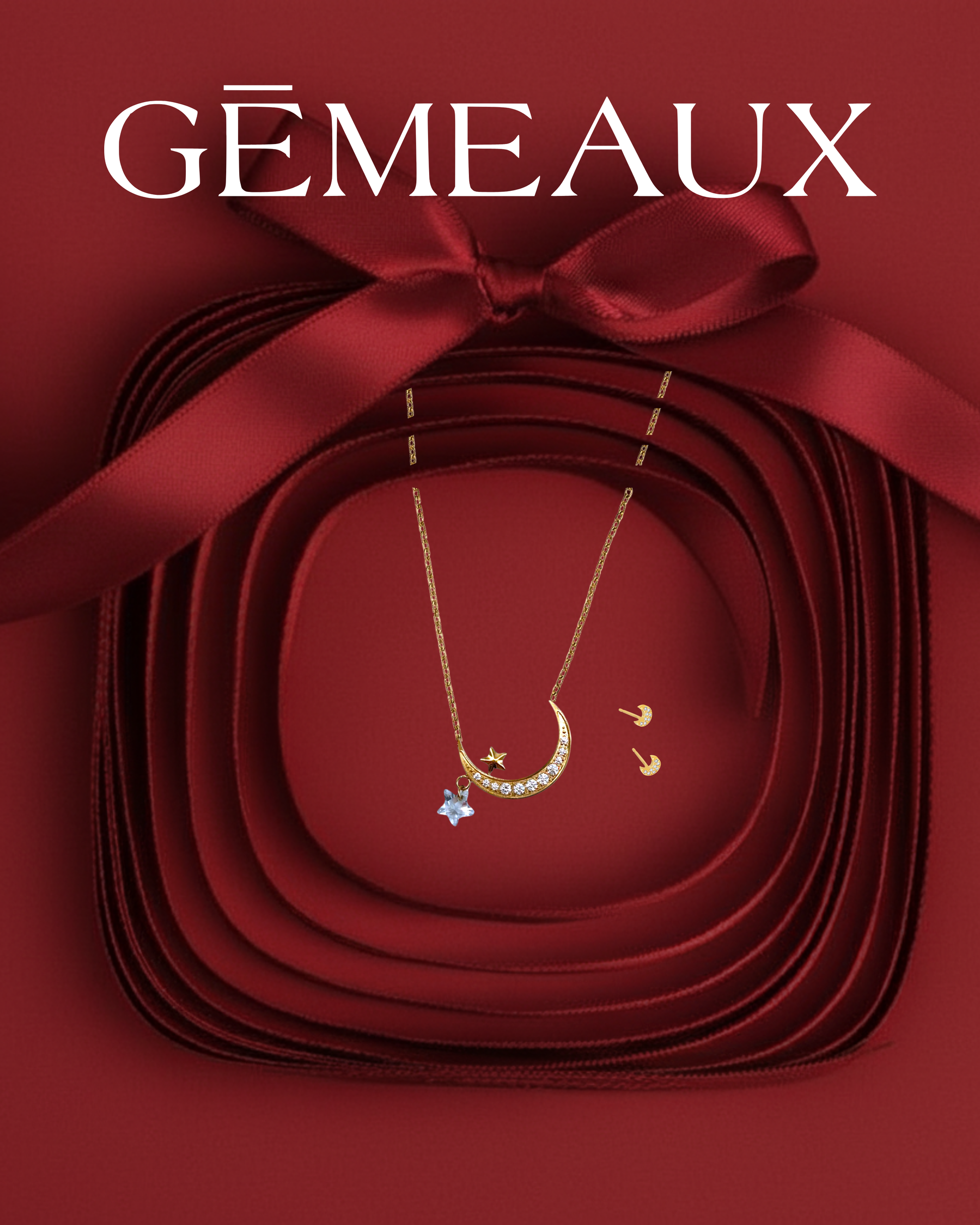 Le collier Clair de Lune, accompagné de ses boucles d’oreilles assorties, capte la lumière avec des reflets doux et subtils, comme un halo lunaire sur la peau.